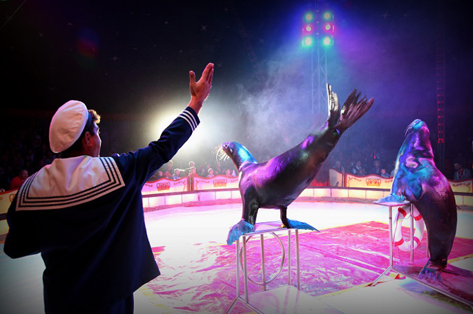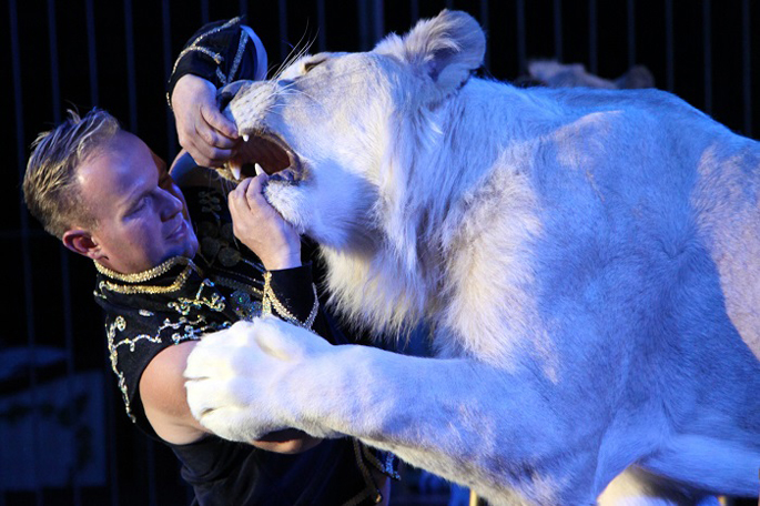 Jak na prawdziwy cyrk przystało, nie zabrało atrakcji dla miłośników zwierząt! Po raz pierwszy w Polsce można będzie oglądać iluzję z udziałem białego tygrysa. Ponadto wystąpią: BIAŁE LWY, wielbłądy, WESOŁE FOKI, konie arabskie, coby i fryzyjskie, zebry, lamy, dromadery, kuce, małpy, byk szkocki, oraz kozy, gęsi, koguty. Takiego widowiska nie można przegapić!