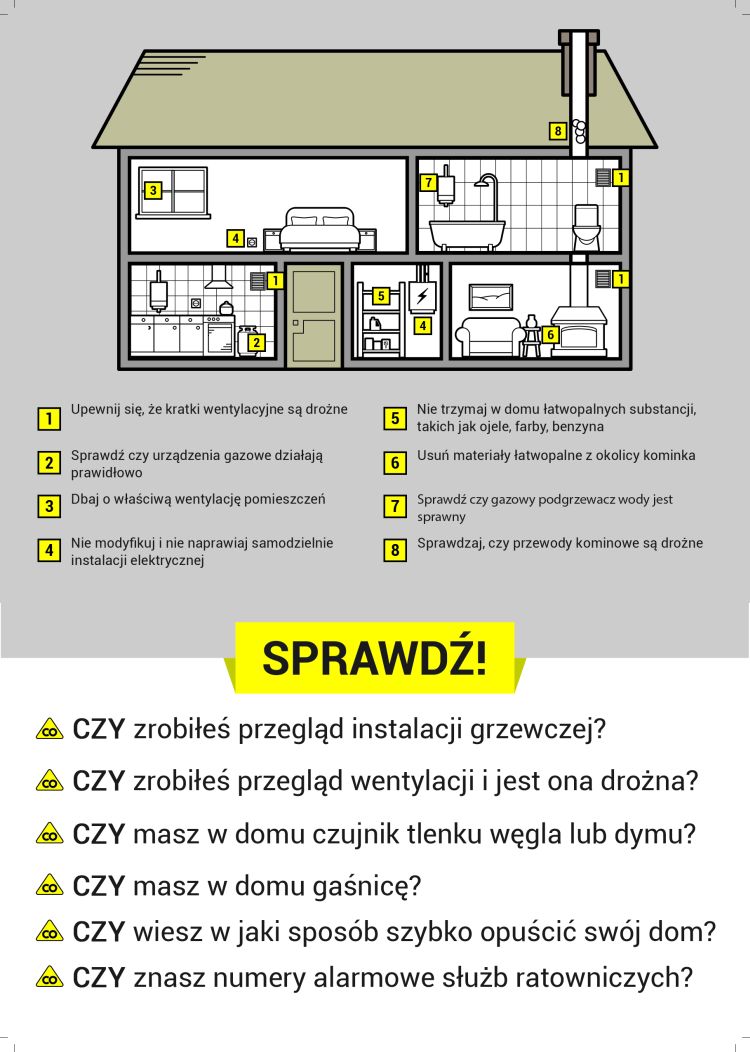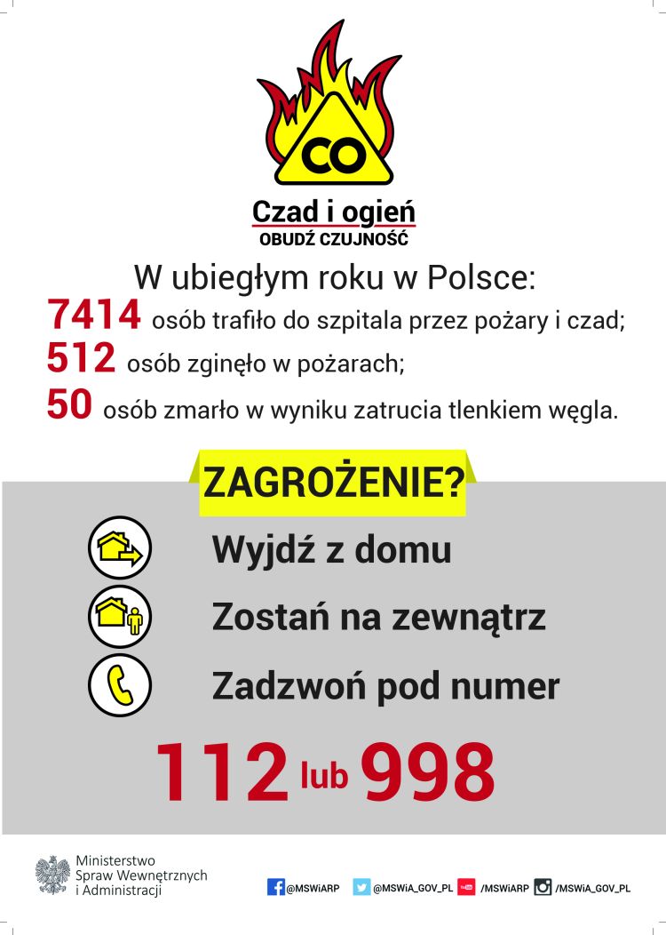 Okres jesienno- zimowy i związany z nim znaczny spadek temperatur wymusza konieczność dogrzewania naszych mieszkań i domów. Nie wszyscy jednak zdają sobie sprawę z faktu, iż nieodpowiedzialne korzystanie z urządzeń ogrzewczych może nieść ze sobą zagrożenie dla życia i zdrowia użytkowników lokali mieszkalnych. Każdego roku na terenie kraju śmiertelnemu zatruciu tlenkiem węgla ulega kilkadziesiąt osób, zaś kilkaset ginie w pożarach.