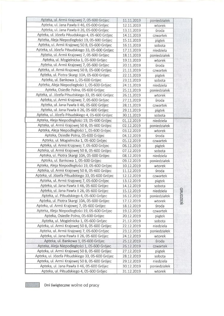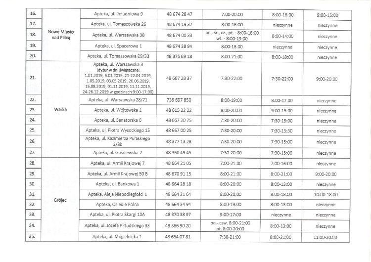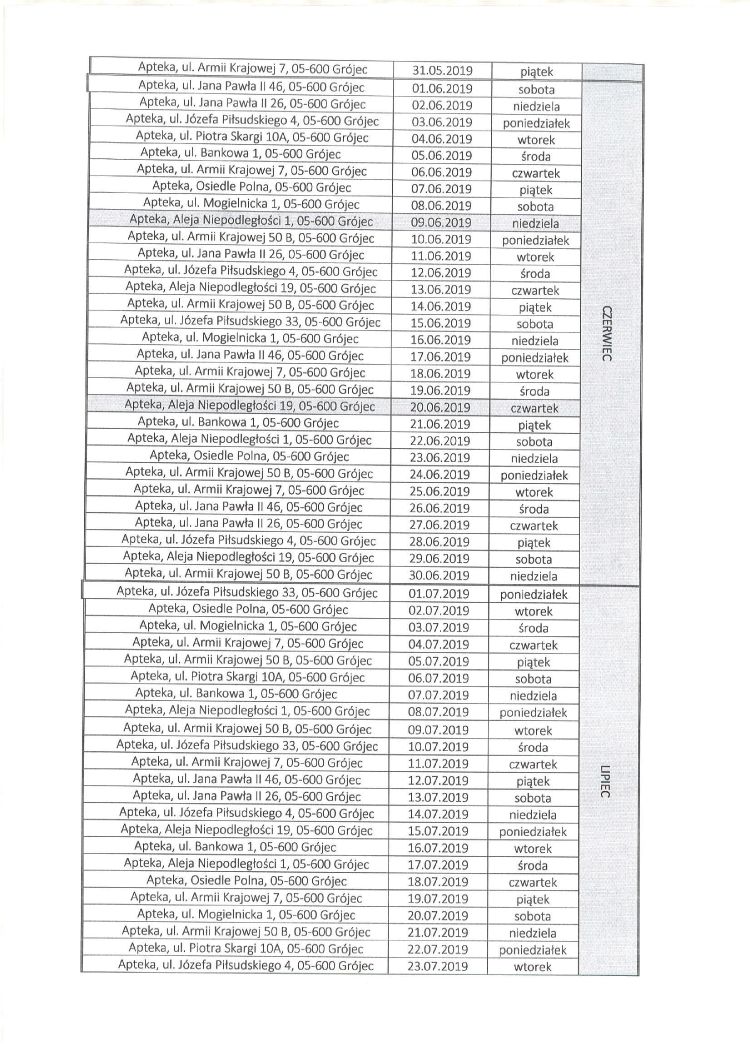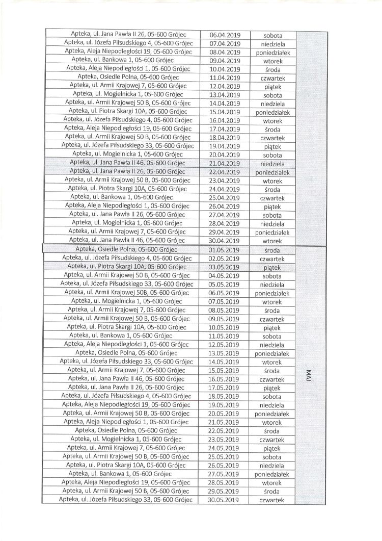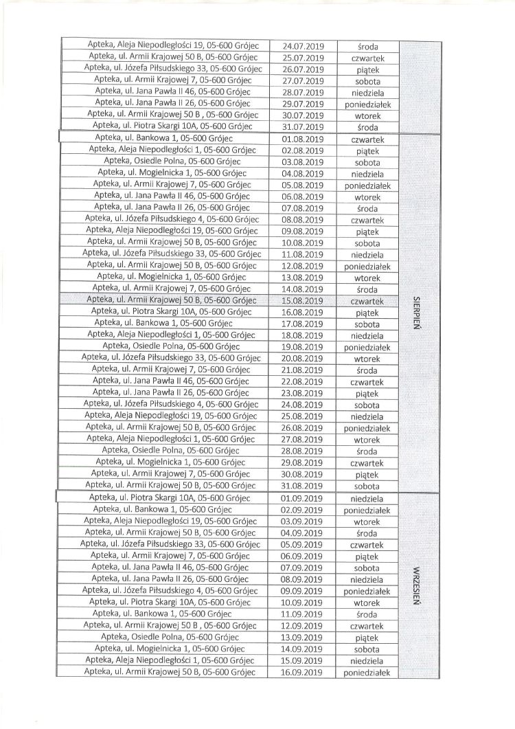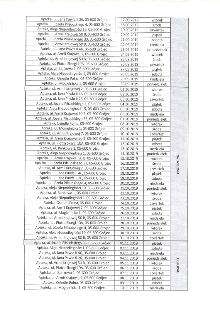 Dyżury aptek Grójec i Powiat Grójecki 2019:
