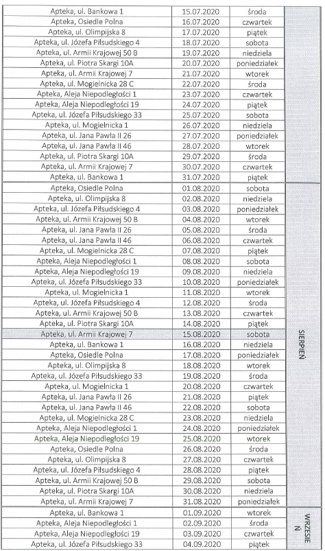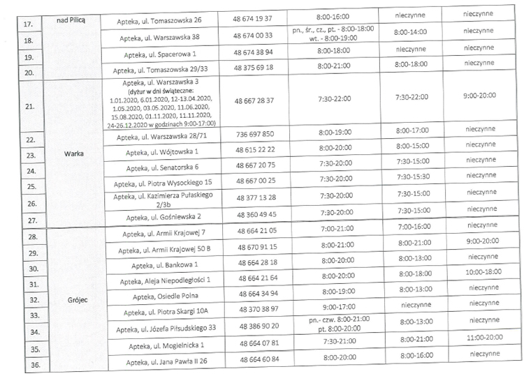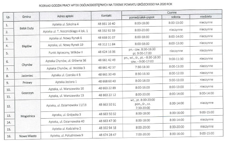 Dyżury aptek Grójec i Powiat Grójecki 2020: