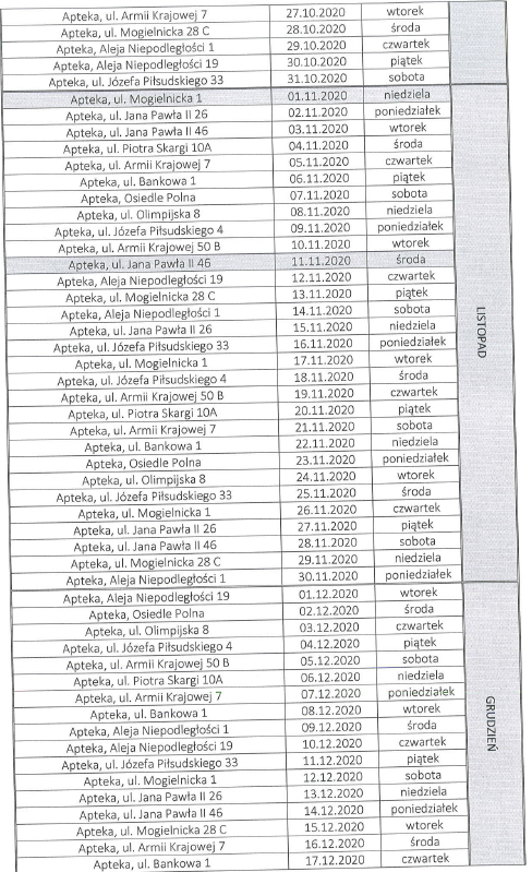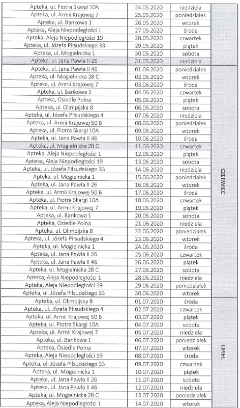 W projekcie uchwały ustalającej godziny pracy oraz harmonogram dyżurów aptek na terenie Powiatu Grójeckiego na 2020 rok skargi te zostały uwzględnione, i wprowadzono również dyżury całodobowe.