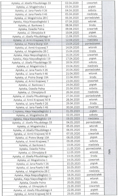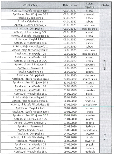 Proszę zauważyć, że powiat nie płaci aptekom za pełnienie dyżurów. To, że powiat ustalił dyżury całodobowe, to nie znaczy, że apteki będą pracować charytatywnie w nocy. W 2019 roku powiat również ustalił dyżury całodobowe, a apteki pełniły je do godz. 24:00, podobnie zapewne będzie również w 2020...