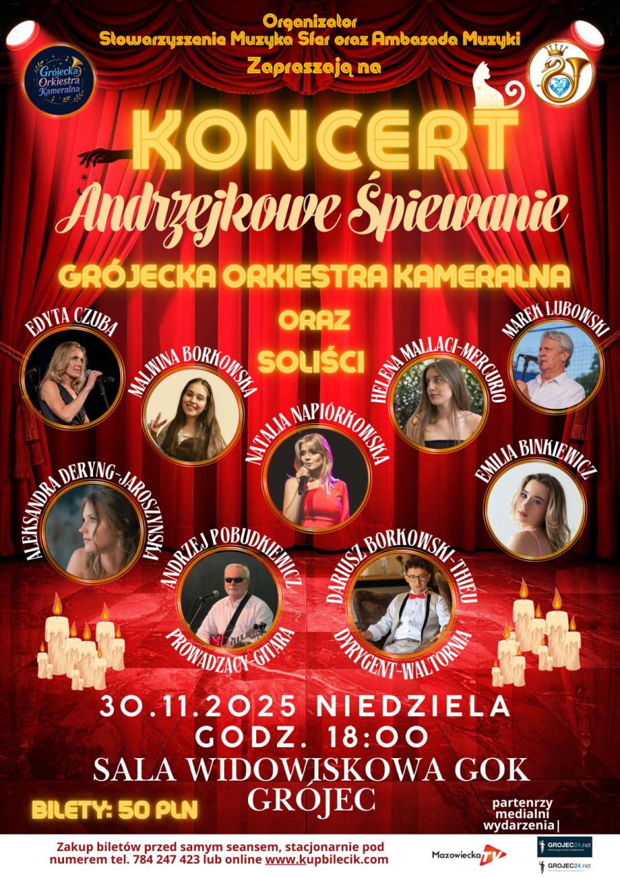 W wieczór andrzejkowy, 30 listopada 2025, Stowarzyszenie Muzyka Sfer oraz Ambasada Muzyki zaprasza na koncert Grójeckiej Orkiestry Kameralnej „Andrzejkowe Śpiewanie”. Początek o godzinie 18:00.