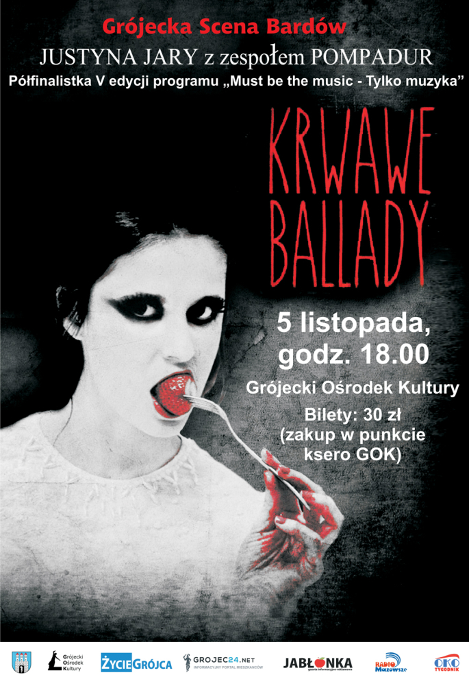 To piesśni często charakteryzujące się dużą dawką czarnego humoru. Wystąpi aktorka, pieśniarka, instruktorka teatralna i wokalna, półfinalistka 5. edycji popularnego programu muzycznego "Must be the music- Tylko muzyka" - Justyna Jary z zespołem Pompadur.