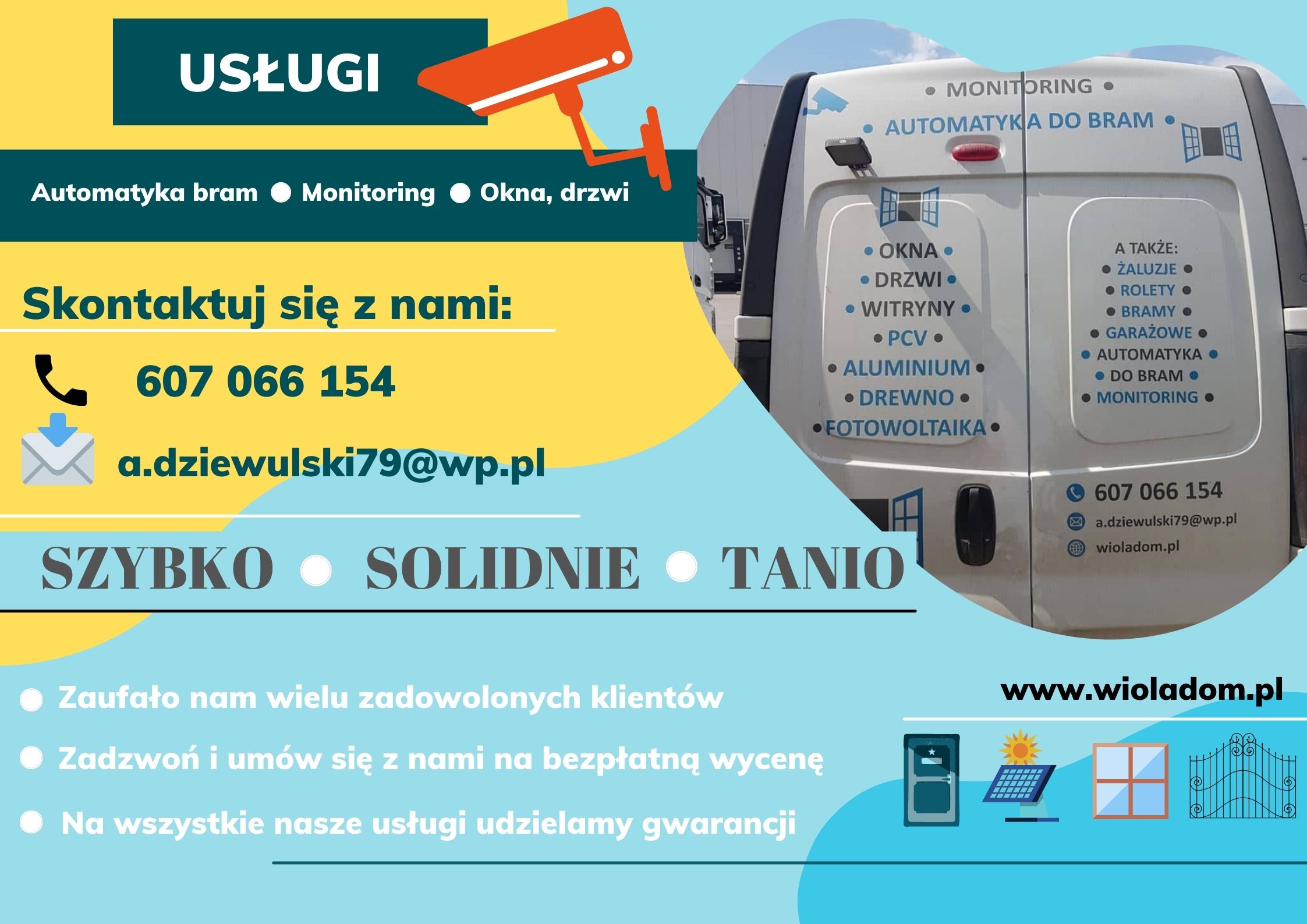 Automatyka do bram i garaży, monitoring i kontrola dostępu, usługi podnośnikiem oraz montaż okien, drzwi-to tylko kilka usług, jakie świadczy "Wiola Dom".