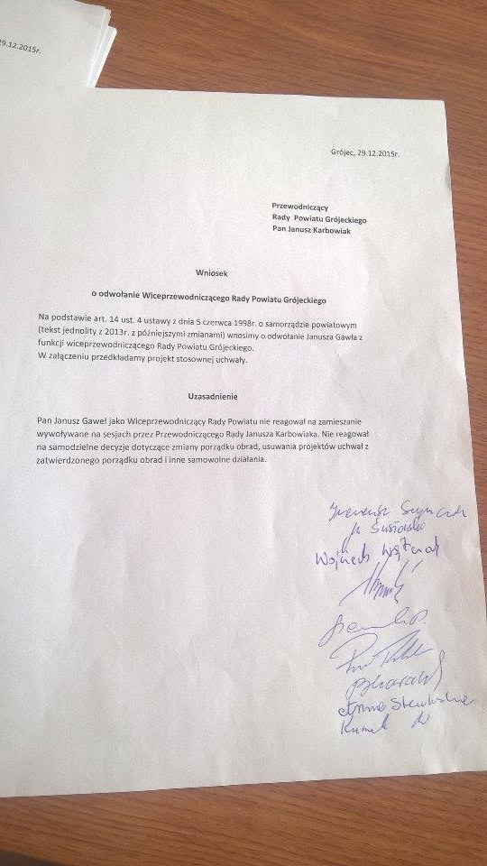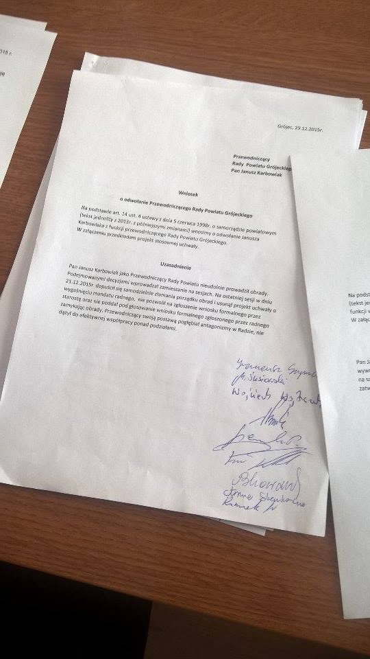 Oto wnioski o odwołanie Janusza Karbowiaka i jego zastępcy Janusza Gawła.