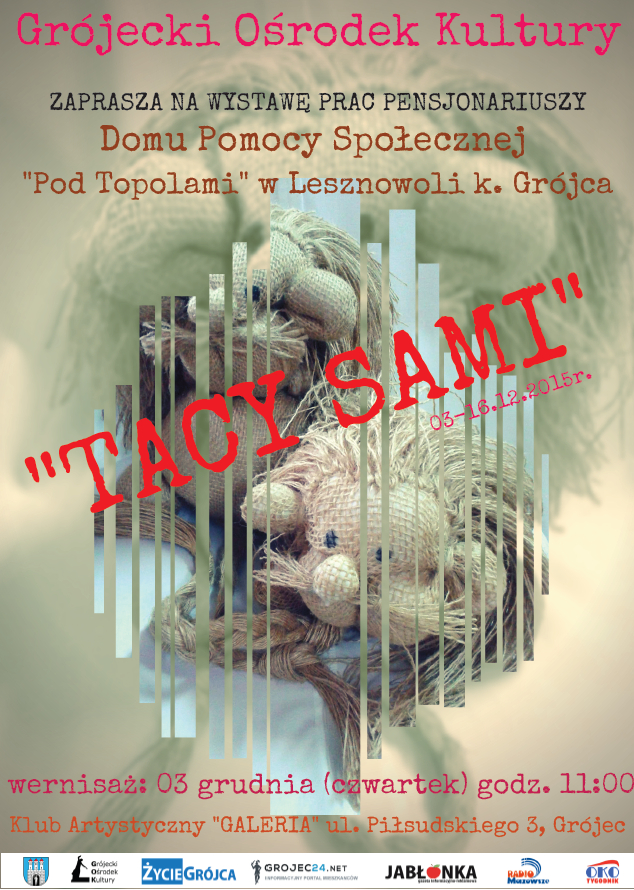 Wybór daty nie był przypadkowy i zbiega się z Międzynarodowym Dniem Osób Niepełnosprawnych. Chcemy przełamać stereotypy i pokazać, że wszyscy ludzie są „TACY SAMI” , mają ambicje, talenty, potrzeby, uczucia chcą być kochani a przede wszystkim akceptowani. Otwarcie wystawy pt. „ TACY SAMI” odbędzie się 03 grudnia (czwartek) godz. 11:00.