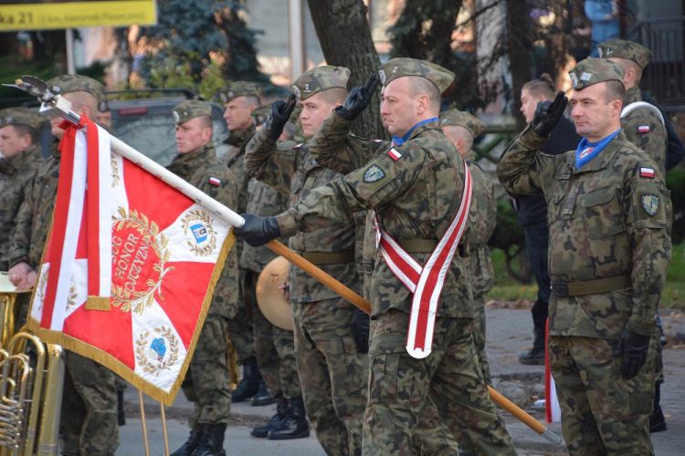 Pod obeliskiem upamiętniającym żołnierzy poległych w walkach w latach 1918 – 1920 na terenie kościoła wystawiono posterunek honorowy, gdzie po zakończeniu mszy świętej złożono wiązanki kwiatów i zapalono znicze. O godz. 15.00 w Kościele pw. Miłosierdzia Bożego w Grójcu odbyły się centralne obchody Święta Odzyskania Niepodległości w Garnizonie Grójec. We mszy świętej uczestniczyli: dowództwo 1. ORel z kompanią honorową i pocztem sztandarowym, samorządowcy ziemi grójeckiej , służby mundurowe, poczty sztandarowe szkół, instytucji i organizacji z terenu powiatu grójeckiego, kombatanci, harcerze, zaproszeni goście, młodzież oraz mieszkańcy Grójca i okolic. Po zakończonym nabożeństwie nastąpił przemarsz ulicami miasta pod pomnik Józefa Piłsudskiego, gdzie odbyły się dalsze uroczystości. Meldunek dowódcy płk. Andrzejowi KOZERZE złożył dowódca uroczystości mjr Mariusz WOŻNIAK. Po odśpiewaniu hymnu państwowego zgromadzeni wysłuchali Niepodległościowego Apelu Pamięci odczytanego przez por. Wojciecha RYCZAJA. Następnie kompania honorowa oddała salwę dla uczczenia bohaterów poległych w walkach za wolność ojczyzny. W dalszej części obchodów złożono wiązanki kwiatów pod pomnikiem Marszałka Józefa Piłsudskiego i zapalono znicz symbolizujący pamięć o wszystkich poległych w walkach o niepodległość Rzeczypospolitej Polskiej.