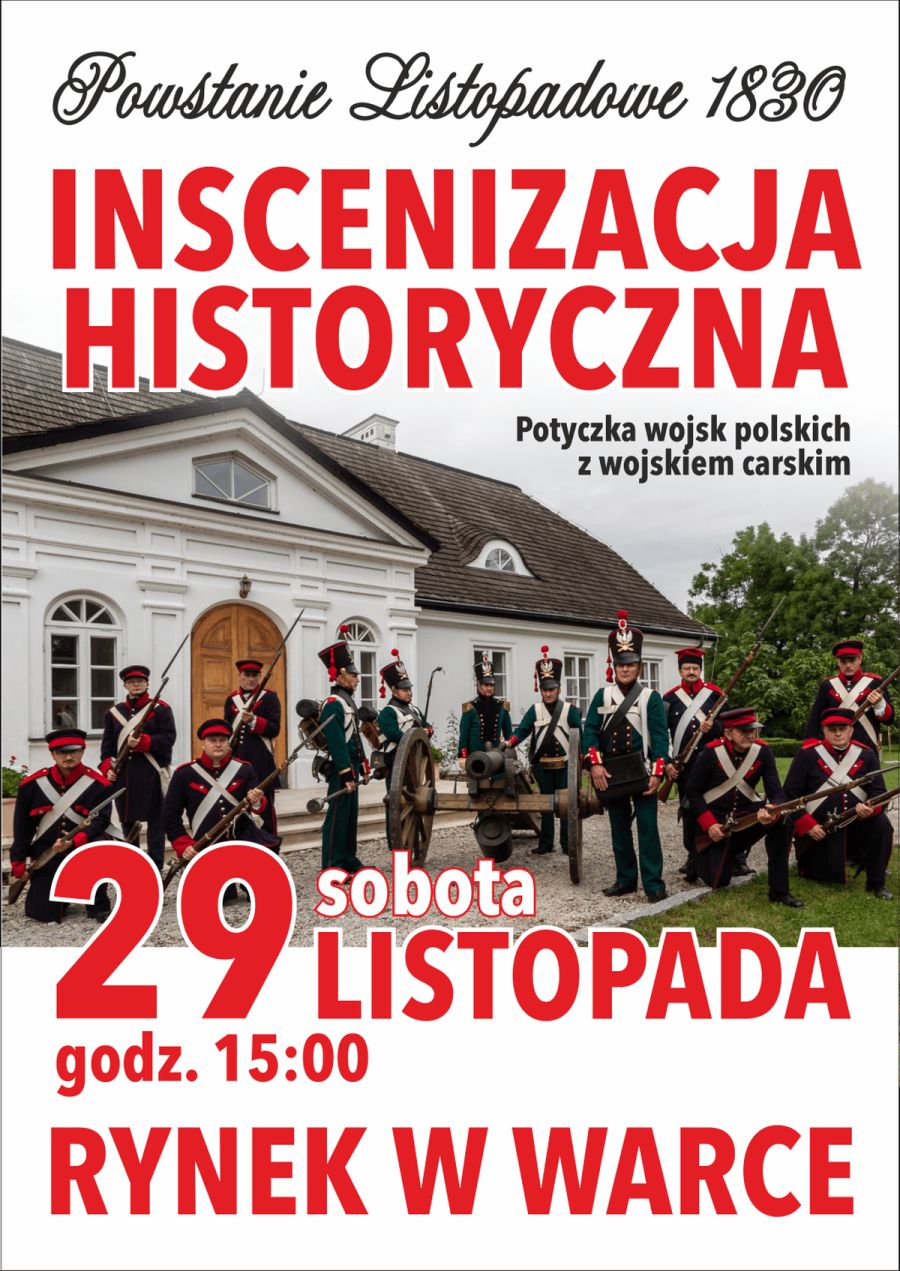 W sobotę, 29 listopada, dokładnie w rocznicę wybuchu Powstania Listopadowego, dla mieszkańców gminy Warka oraz wszystkich gości przygotowano wyjątkowe wydarzenie. Na wareckim rynku o godz. 15:00 odbędzie się widowisko historyczne pod tytułem „Iskra Wolności – Powstanie Listopadowe 1830”.