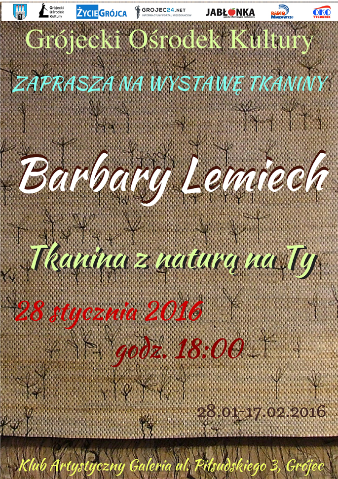Grójecki Ośrodek Kultury gorąco zaprasza na wystawę tkaniny Barbary Lemiech "Tkanina z naturą na Ty" 28 stycznia o godz. 18:00.