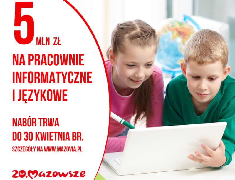 Również 5 mln zł samorząd Mazowsza przeznaczy na realizację kolejnego nowego wsparcia: Mazowiecki Program Dofinansowania Pracowni Informatycznych i Językowych. Pieniądze można będzie przeznaczyć na modernizację i tworzenie nowych pracowni informatycznych i językowych dla uczniów szkół podstawowych i ponadpodstawowych. Dzięki dotacjom z budżetu Mazowsza możliwy będzie zakup nowoczesnego sprzętu i niezbędnego oprogramowana, a także elementów wyposażenia.