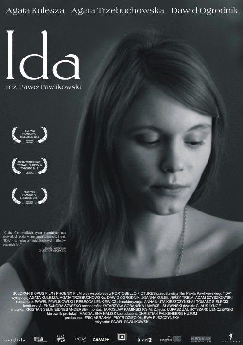 IDA, dramat, występują: Agata Kulesza (Wanda Gruz, ciotka Anny), Agata Trzebuchowska (Ida Lebenstein - siostra Anna), Dawid Ogrodnik (chłopak), Joanna Kulig (piosenkarka), Jerzy Trela (Szymon Skiba), Adam Szyszkowski (Feliks Skiba, syn Szymona), Halina Skoczyńska (matka przełożona), Dorota Kuduk (Kaśka Skiba, żona Feliksa), Natalia Łągiewczyk (nowicjuszka Bronia), Afrodyta Weselak (nowicjuszka Marysia), Mariusz Jakus (barman), Izabela Dąbrowska (kelnerka w Szydłowie), Artur Janusiak (milicjant), Anna Grzeszczak (sąsiadka Szymona Skiby), Jan Wojciech Poradowski (ksiądz Andrzej) i inni, reżyseria: Paweł Pawlikowski, scenariusz: Paweł Pawlikowski, Rebecca Lenkiewicz, zdjęcia: Łukasz Żal, Ryszard Lenczewski, montaż: Jarosław Kamiński, muzyka: Kristian Eidnes Andersen, scenografia: Katarzyna Sobańska, Marcel Sławiński, czas trwania: 80 min., Polska, Dania, 2013