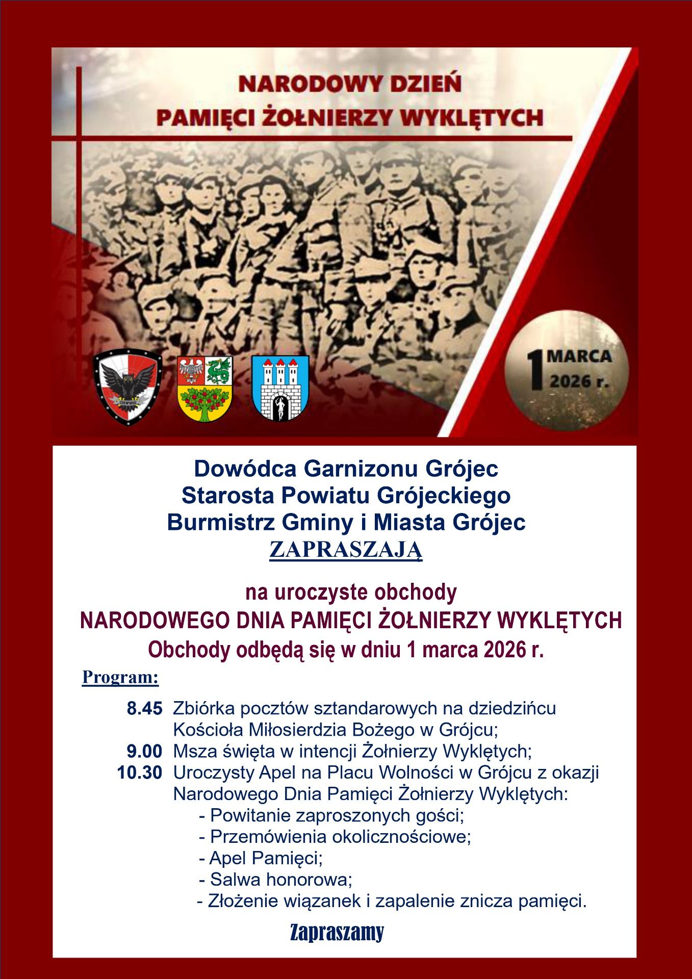 Zapraszamy mieszkańców do wspólnego udziału w uroczystych obchodach Narodowego Dnia Pamięci Żołnierzy Wyklętych, które odbędą się 1 marca 2026 roku w Grójcu. To wyjątkowa okazja, by wspólnie oddać hołd bohaterom podziemia niepodległościowego, którzy po II wojnie światowej z niezłomną determinacją walczyli o wolną Polskę.