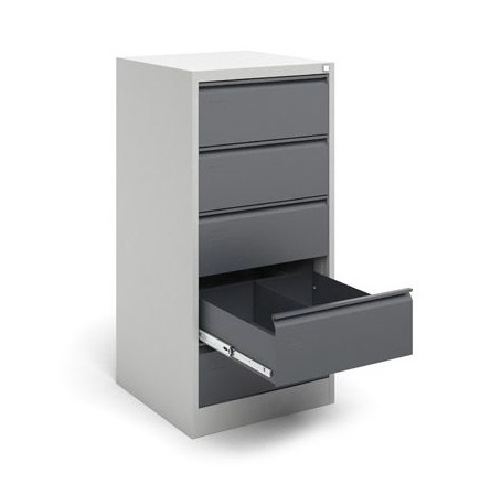 Szafy na kartoteki występują w wielu wariantach. Mogą być przystosowane do przechowywania dokumentów w rozmiarze B5, A4, A5 oraz A6. Przydatnym rozwiązaniem jest identyfikator znajdujący się na szufladach. Pozwala on utrzymać porządek w dokumentacji. Kartoteki mogą być składowane według dowolnie dobranego klucza – alfabetycznie, tematycznie czy według daty. Blacha stalowa jest odporna na duże obciążenia – nawet do 50 kg. Szafy kartotekowe wzbogacone są w zamknięcie na centralny zamek, co zabezpiecza ich zawartość przed dostępem osób niepożądanych. Możliwe jest doposażenie szuflad w praktyczne przegrody, ułatwiające segregację przechowywanych kartotek i teczek.