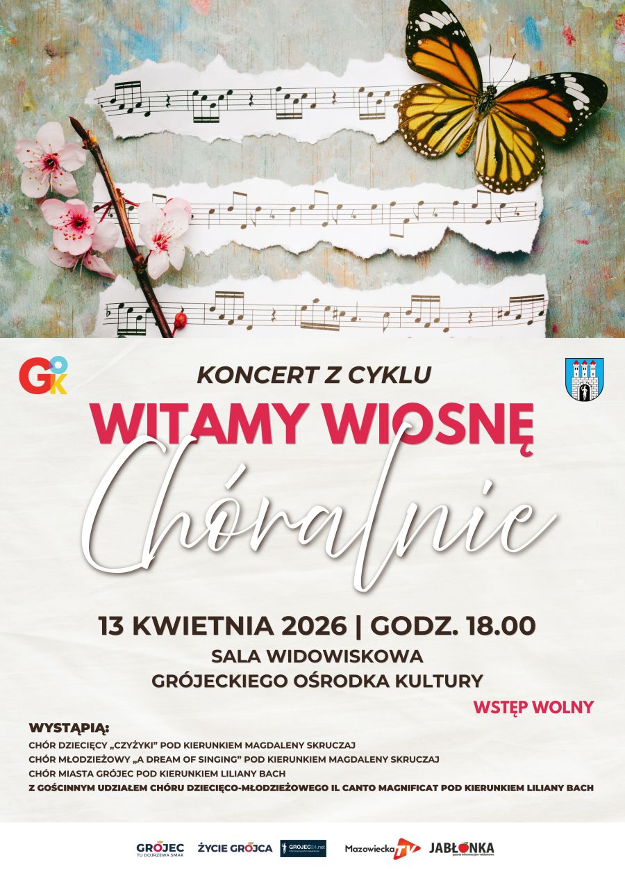 Już w poniedziałek, 13 kwietnia, Sala Widowiskowa Grójeckiego Ośrodka Kultury wypełni się wyjątkowymi głosami. Tradycyjnie zapraszamy na koncert z cyklu „Witamy Wiosnę Chóralnie”!