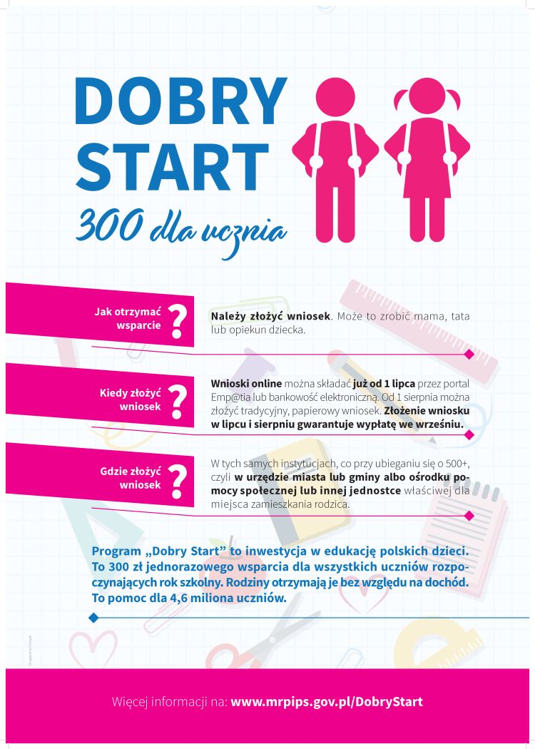 Szczegółowe informacje na temat programu: https://www.gov.pl/web/rodzina/dobry-start