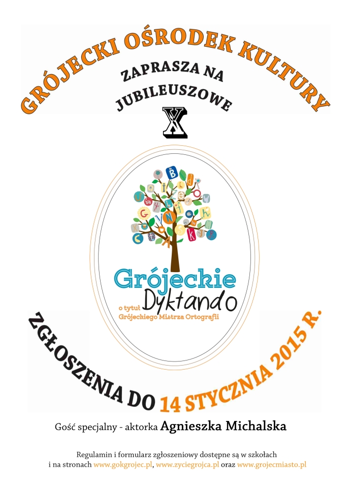 Grójecki Ośrodek Kultury zaprasza do udziału w X Grójeckim Dyktandzie o tytuł "Grójeckiego Mistrza Ortografii".