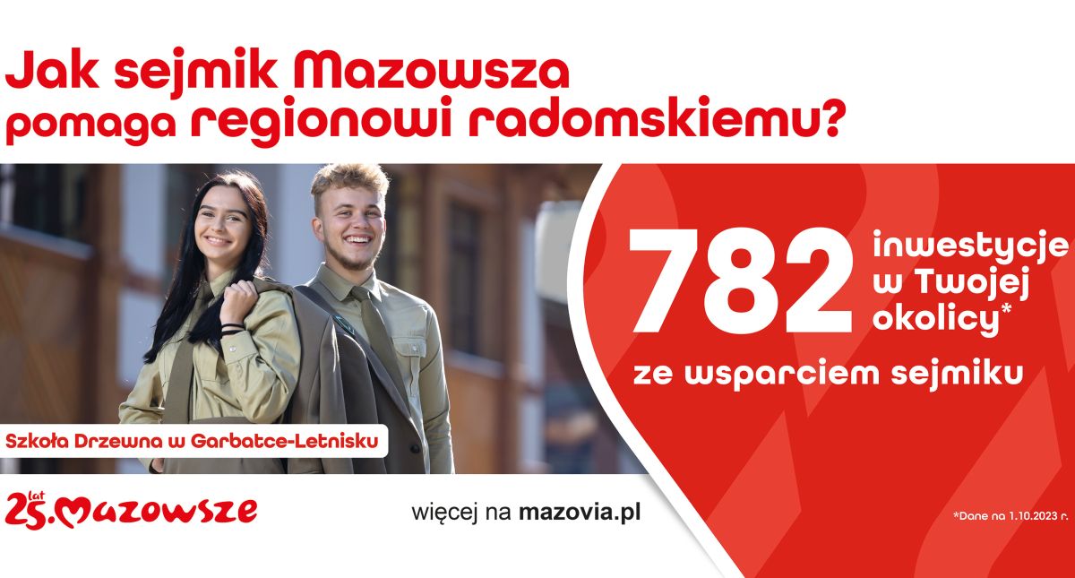 Samorząd województwa mazowieckiego od lat wspiera miasta, gminy i powiaty w realizacji projektów ważnych dla rozwoju lokalnych społeczności. Jak zauważa wicemarszałek Rafał Rajkowski, gminy i powiaty z regionu radomskiego aktywnie sięgają po dofinansowanie z budżetu województwa mazowieckiego. – Tylko w tym roku na pomoc finansową dla samorządów lokalnych, organizacji pozarządowych, działkowców czy jednostek OSP z całego województwa przekazaliśmy niebagatelne 885 mln zł. To pieniądze na zarówno duże, jak i małe inwestycje, które potrzebne są mieszkańcom. Zachęcam do składania wniosków w trwających właśnie naborach do programów wsparcia, które realizowane będą w przyszłym roku. W sumie przeznaczyliśmy na nie aż 900 mln zł.