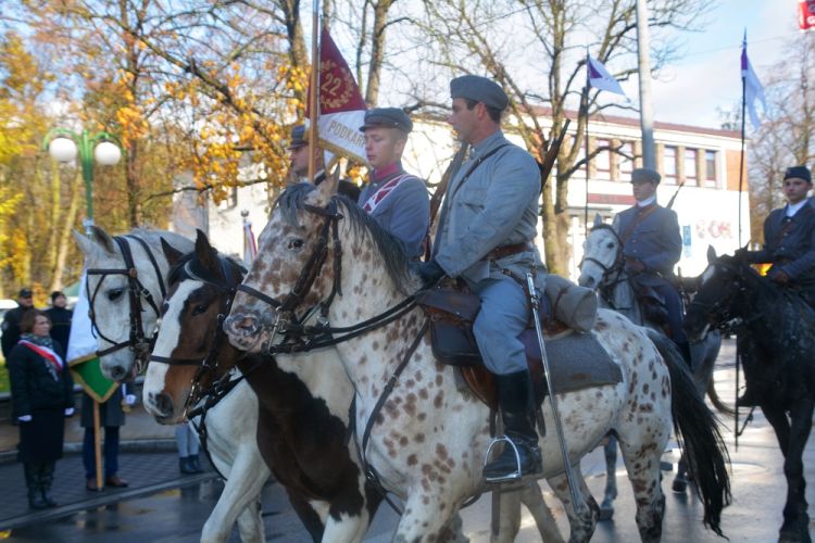 Po zakończonym nabożeństwie nastąpił przemarsz ulicami miasta pod pomnik Józefa Piłsudskiego , gdzie odbył się dalsze uroczystości niepodległościowe. Przemarsz uświetniła parada 22 Pułku Ułanów Podkarpackich. Meldunek dowódcy płk. Andrzejowi KOZERZE złożył dowódca uroczystości mjr Michał ŚNIADY. Po odśpiewaniu hymnu państwowego głos zabrali płk Kozera i Burmistrz Miasta i Gminy Jacek STOLARSKI podkreślając wagę i znaczenie daty 18 listopada 1918 r. dla losów naszego państwa, po czy zgromadzeni wysłuchali Niepodległościowego Apelu Pamięci odczytanego przez mjr. Romana FIJAŁKOWSKIEGO. Następnie kompania honorowa oddała salwę dla uczczenia pamięci bohaterów poległych w walkach za wolność ojczyzny.