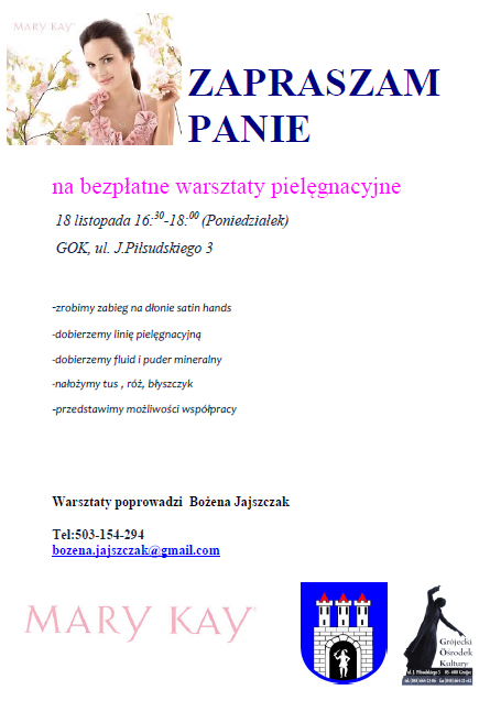 W najbliższy poniedziałek, 18 listopada, odbędą się warsztaty pielęgnacyjne dla pań. Jeśli dobór fluidu czy pudru sprawia Ci problem, te warsztaty są właśnie dla Ciebie! Bożena Jajszczak, doświadczony doradca, pomoże Ci rozwiązać Twoje trudności związane z dobrem odpowiednich kosmetyków.