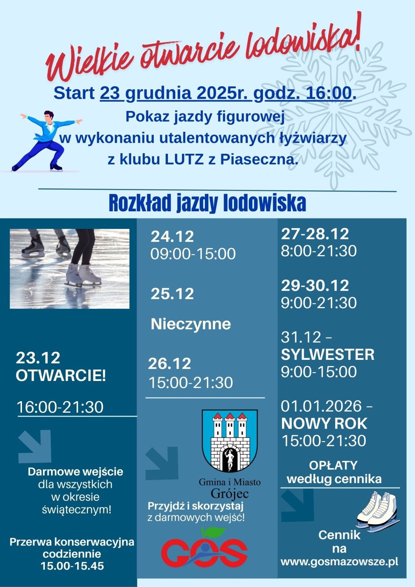 Lodowisko przy stadionie ul. Laskowa 17 zostanie otwarte we wtorek 23 grudnia 2025 r. o godz. 16:00.
