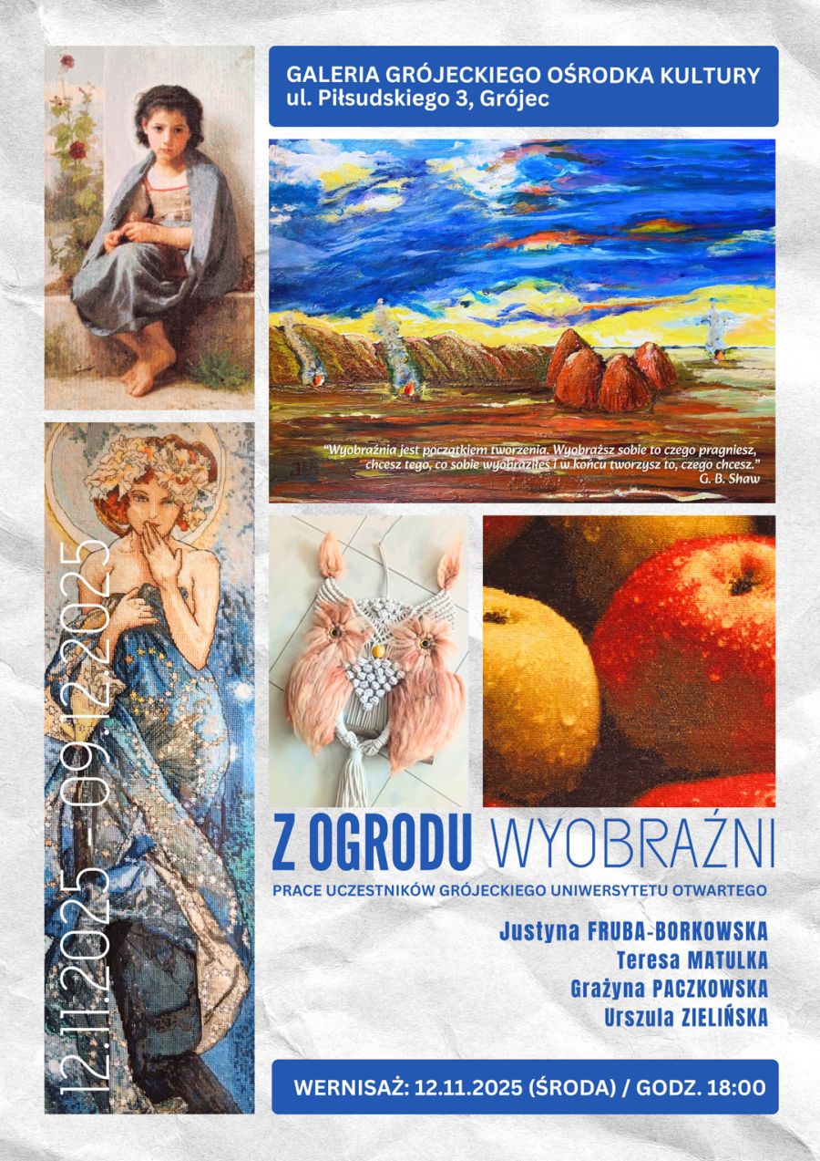 Grójecki Ośrodek Kultury zaprasza na wyjątkowy wernisaż wystawy „Z Ogrodu Wyobraźni”, prezentującej twórczość utalentowanych uczestników Grójeckiego Uniwersytetu Otwartego!
