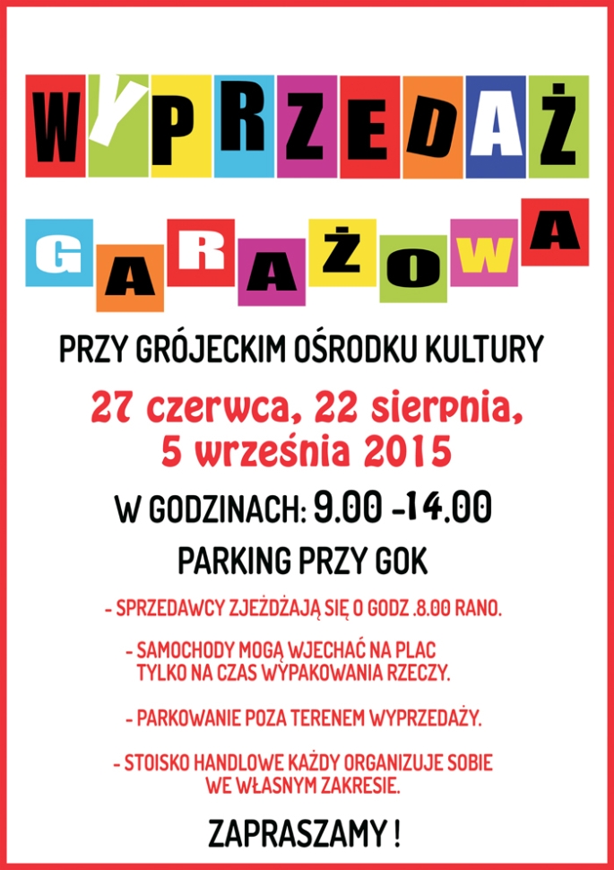 Z powodu dużego zainteresowania grójecką wyprzedażą garażową organizatorzy ustalili trzy kolejne terminy wydarzenia (27 czerwca, 22 sierpnia i 5 września).